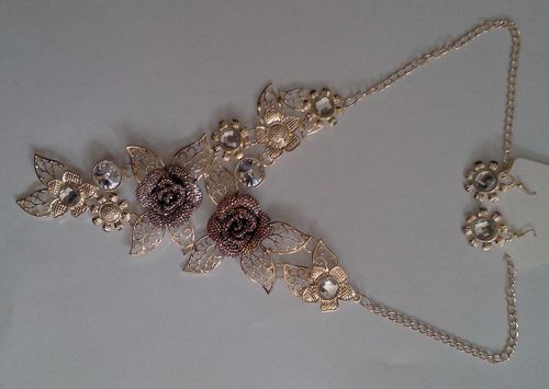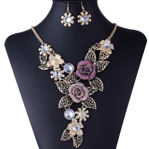 Cluster Leaf Statement Women Choker Necklace Earrings Set