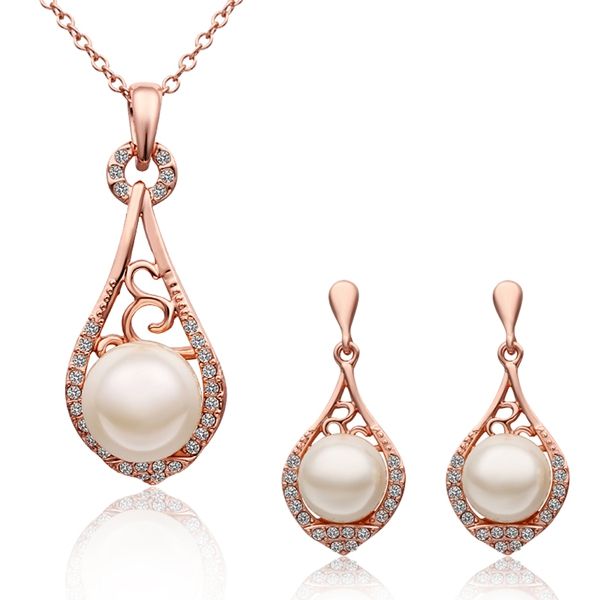 Material:Rhinestone;Gender:Women;Style:Romantic;Occasion:Party;Metals Type:Rose Gold;Included Additional Item Description:Earring Necklace;Jewelry Sets Type:Necklace/Earrings;Shape/Pattern:Water Drop;Metal color:Rose Gold Plated;