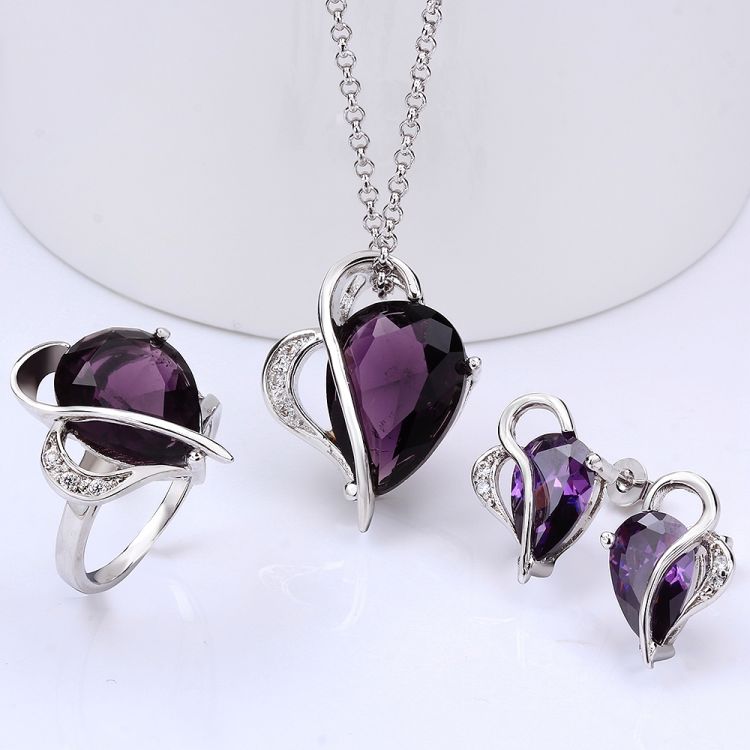 Model Number:FVRS051;Material:Crystal;Gender:Women;Style:Romantic;Occasion:Party;MetalsType:Platinum;Included Additional Item Description:Necklace Ring Earrings;JewelrySets Type:Bridal Jewelry Sets;Shape/pattern:Water Dropr Drop