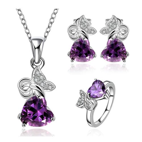 ModelNumber:FVRS036;Material:Crystal;Gender:Women;Style:Romantic;Occasion:Party;MetalsType:Platinum;Included Additional Item Description: Necklace Ring Earrings;JewelrySets Type:Bridal Jewelry Sets;Shape/pattern:Heart;Metal color:Platinum Plated;