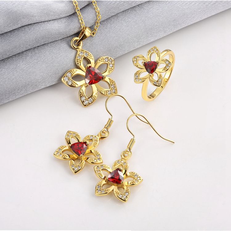Material:Cubic Zirconia;Gender:Women;Style:Classic;Occasion:Party;Metals Type:Copper;Included Additional Item Description:Earrings Necklace Ring;Jewelry Sets Type:Bridal Jewelry Sets;Shape/pattern:Plant;Metal color:24K Gold Plated;