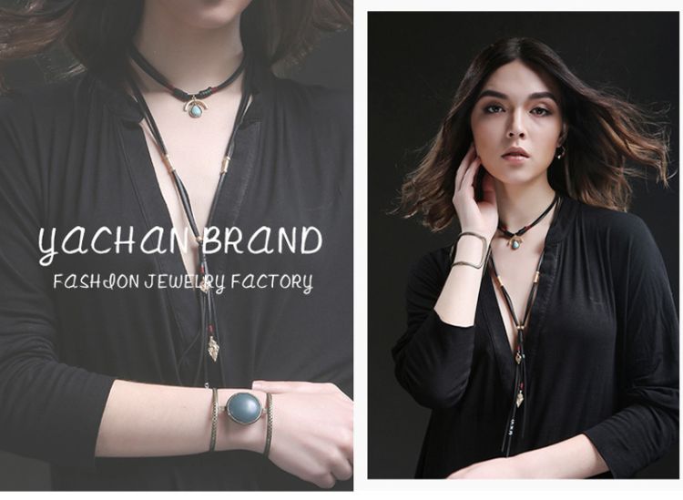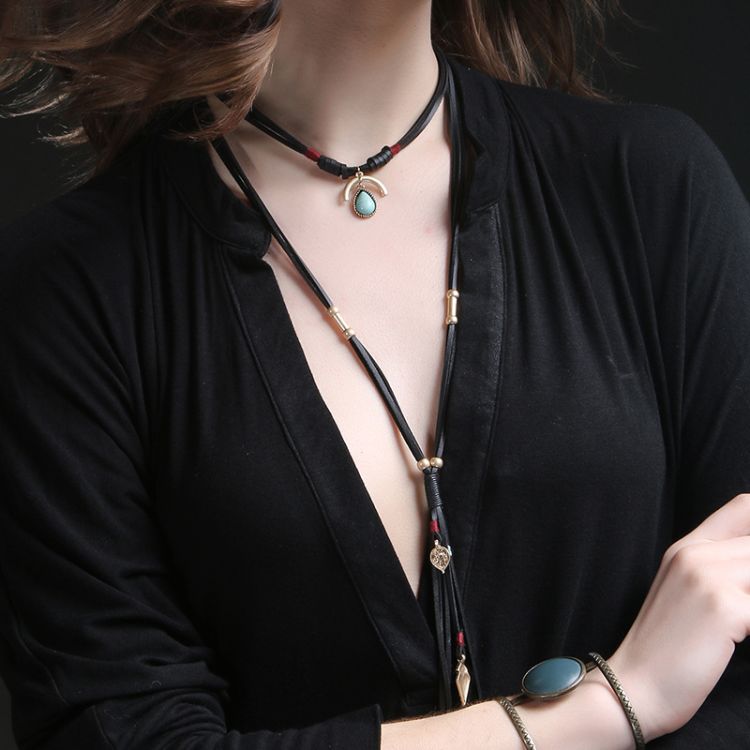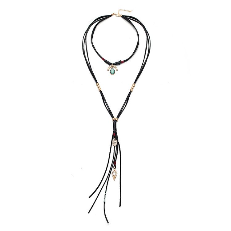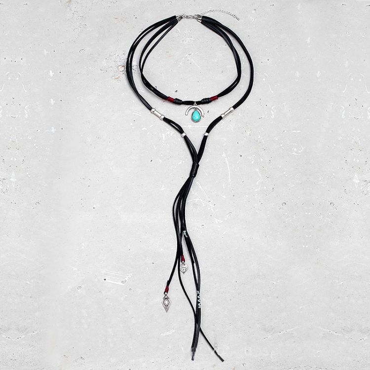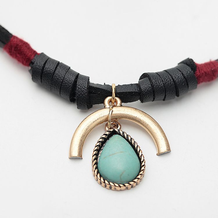 【HAFUMA Necklace】Fashion Black Pine Turquoise Water Drop Gem Pendant Wax Wire Alloy Necklace