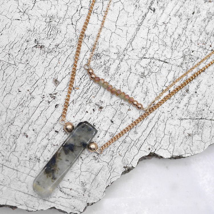 【HAFUMA Necklace】European and American fashion street shooting natural stone pendants multi - alloy necklace