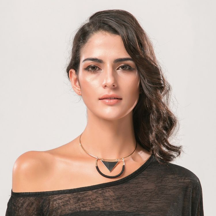 【HAFUMA Necklace】Europe and the United States fashion personality cortex cotton triangle section KC gold necklace
