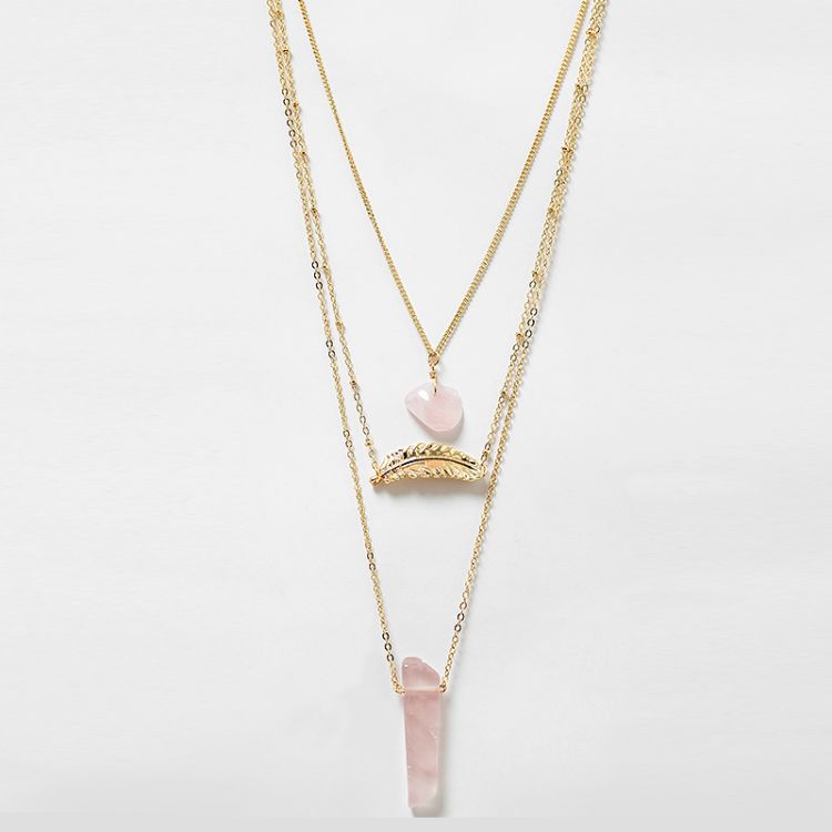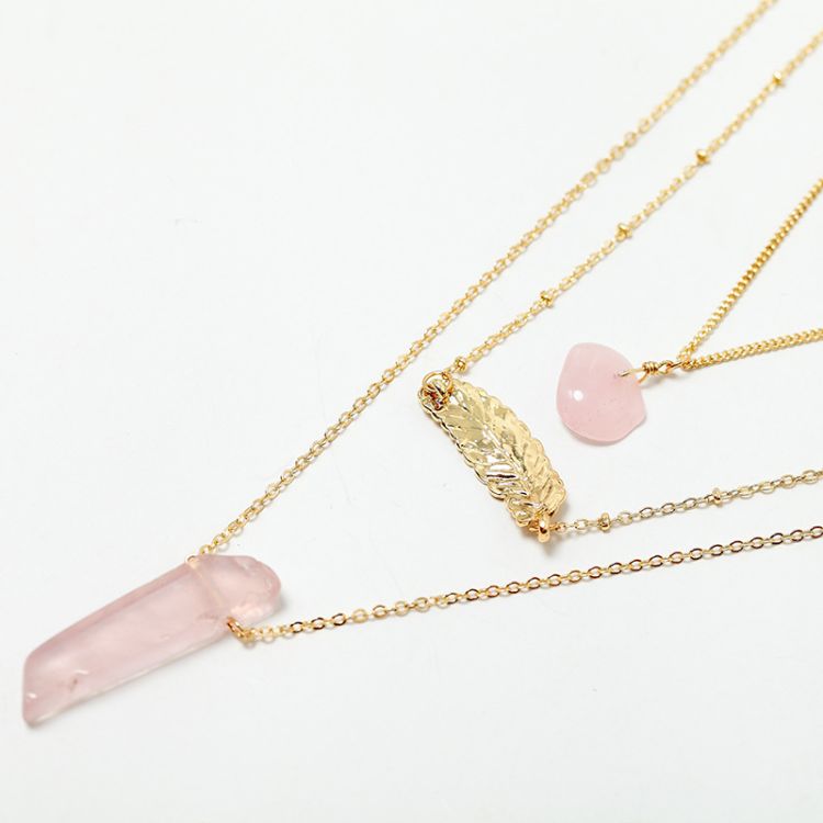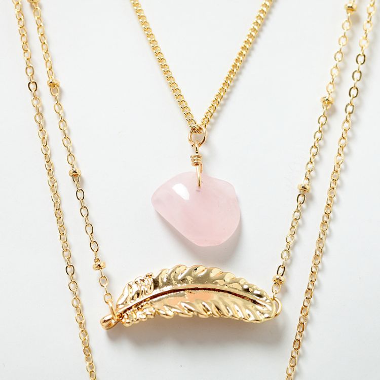 【HAFUMA Necklace】Europe and American personality simple wind natural stone metal leaves multi - alloy female necklace