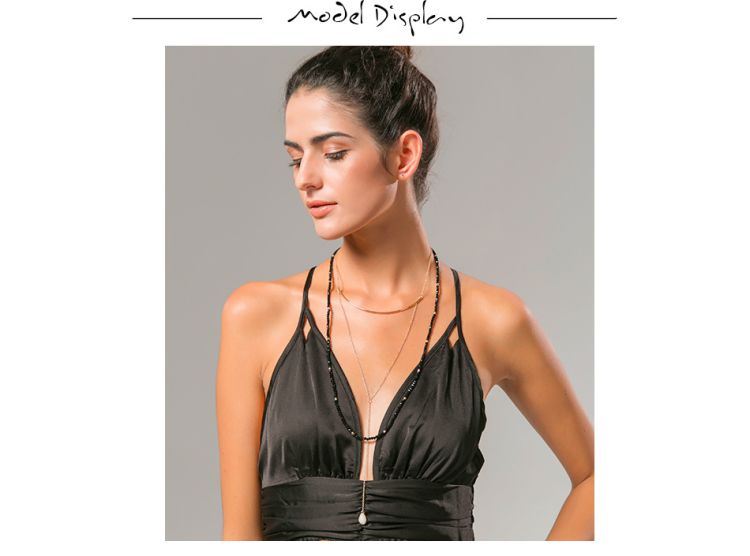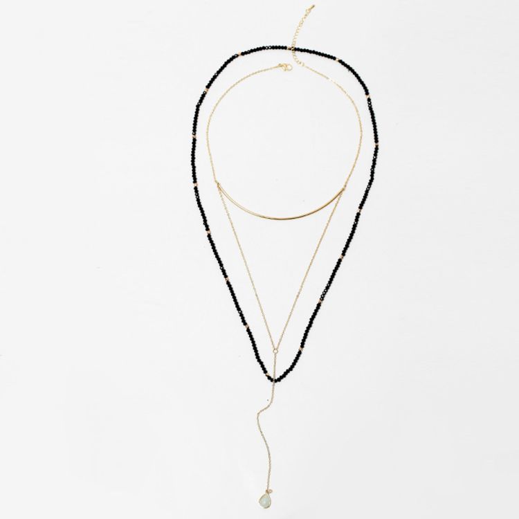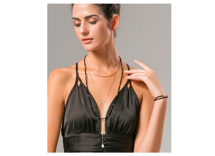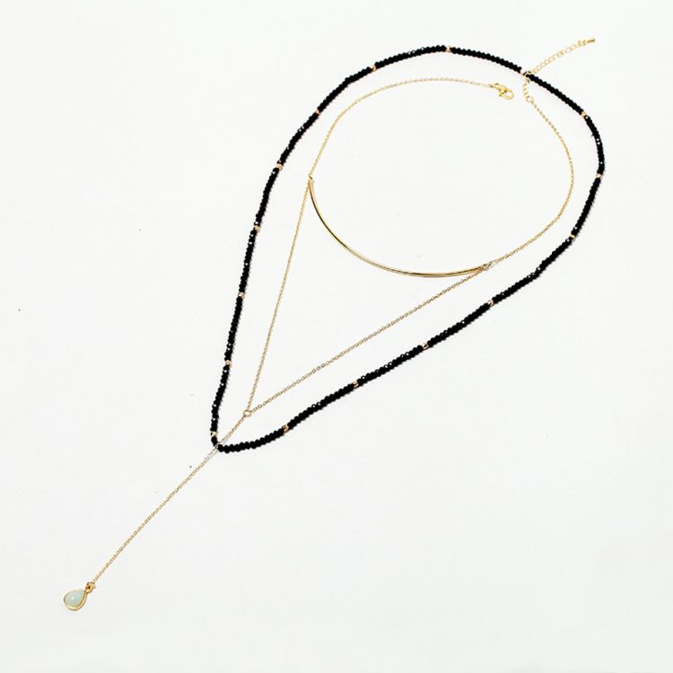【HAFUMA Necklace】Fashion Black Tear Crystal Natural Stone Long multi-layer high quality alloy necklace