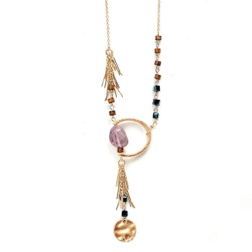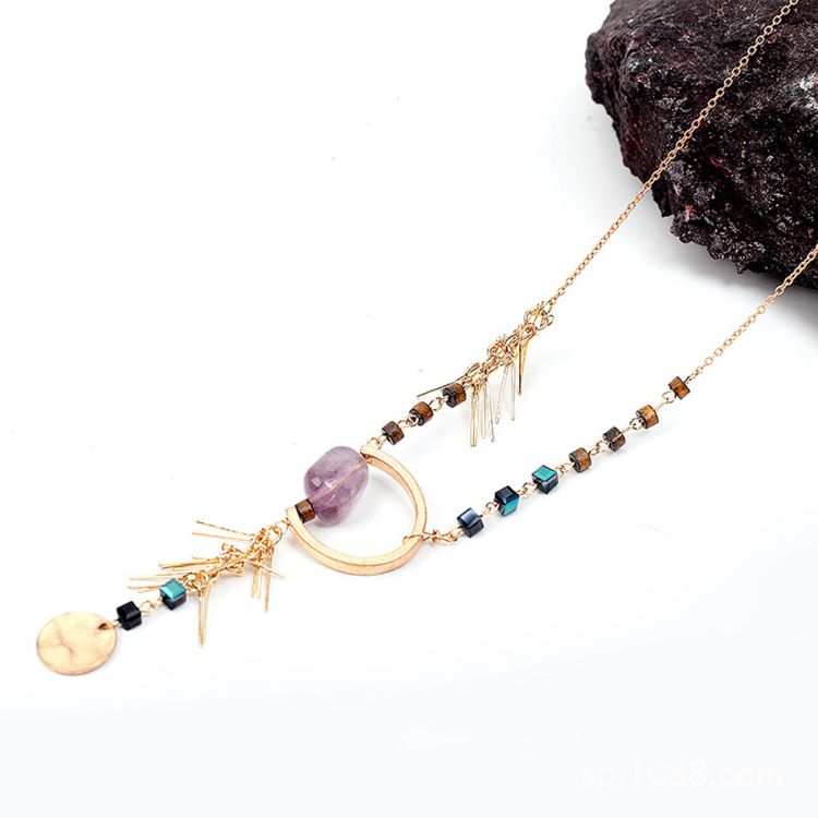 【HAFUMA Necklace】Popular burst amethyst alloy pendant ladies Bohemian style high quality long necklace