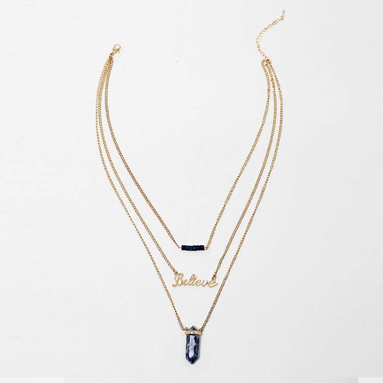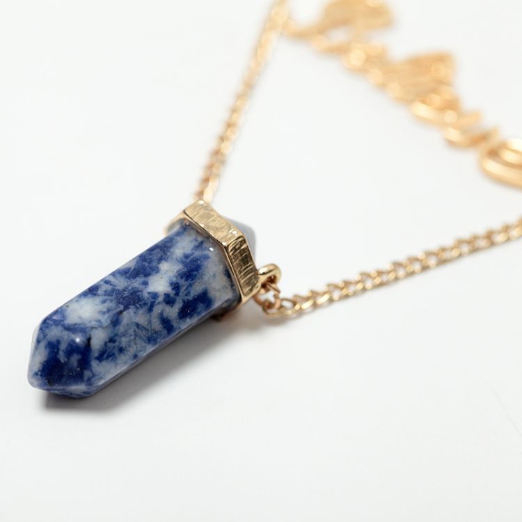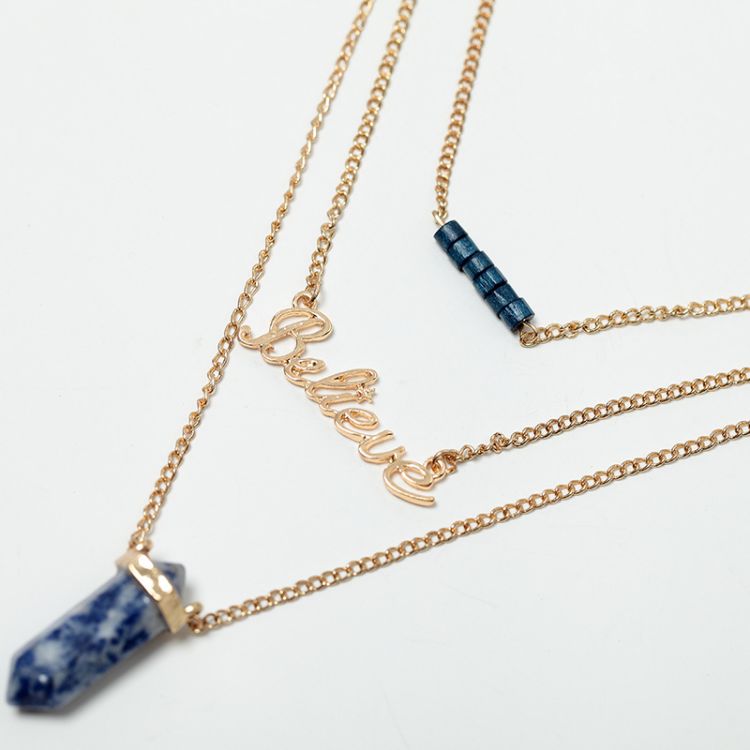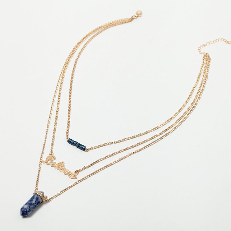 【HAFUMA Necklace】Fashion Street beat natural stone crystal pendants of English alphabet multi - layer alloy necklace