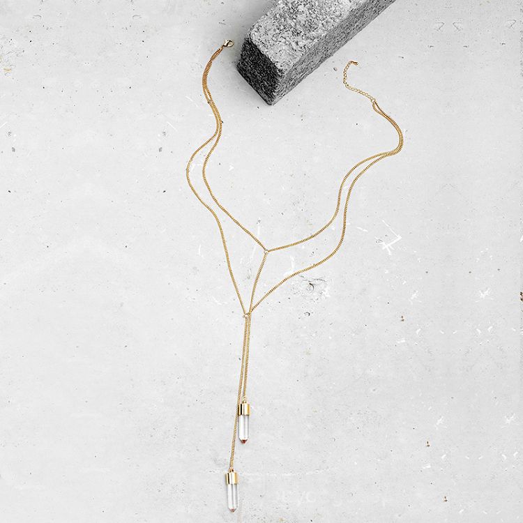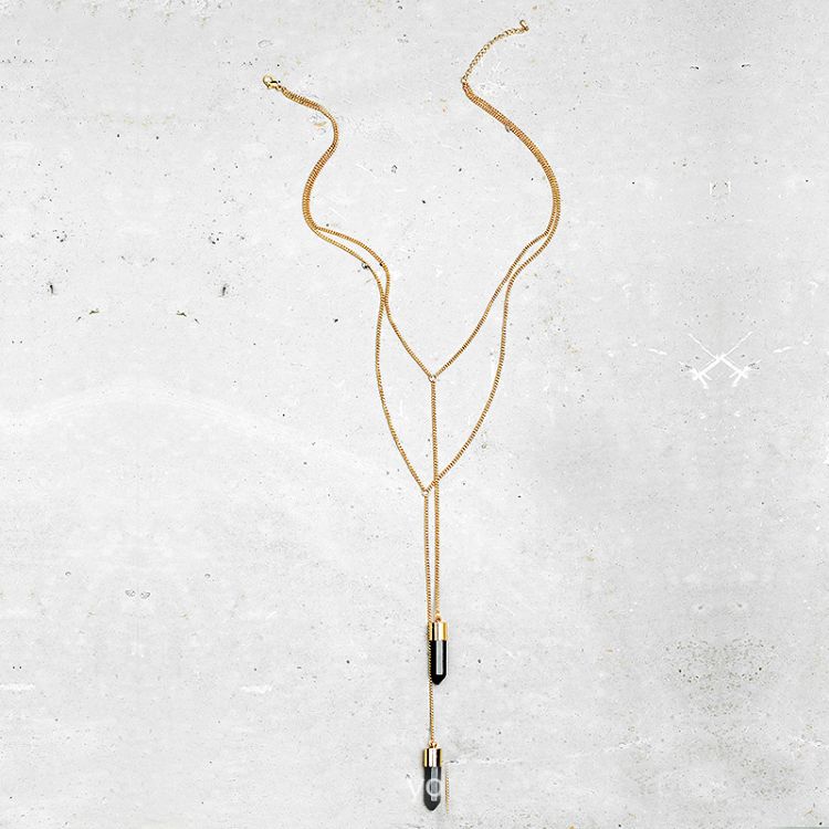 【HAFUMA Necklace】Fashion creative multi - layer simple ornaments glass pendant gold sexy necklace