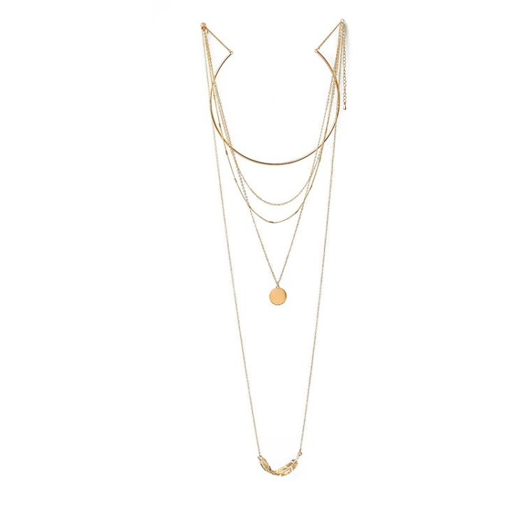【HAFUMA Necklace】Fashion wild personality multi - layer metal leaf sequin long temperament necklace