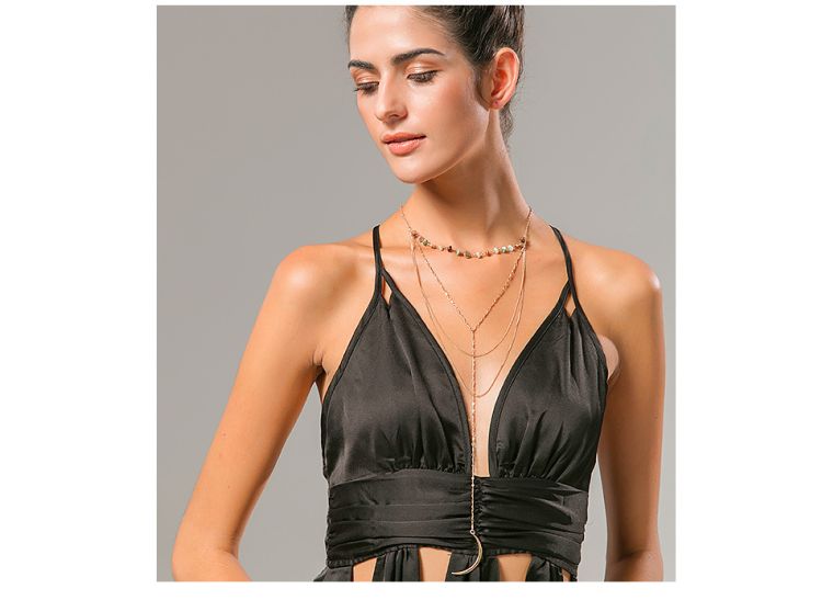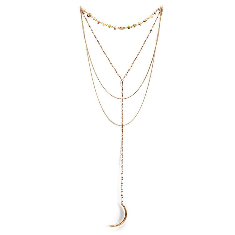 【HAFUMA Necklace】Original design Europe and American mixed color natural stone multi-layer alloy pendant necklace