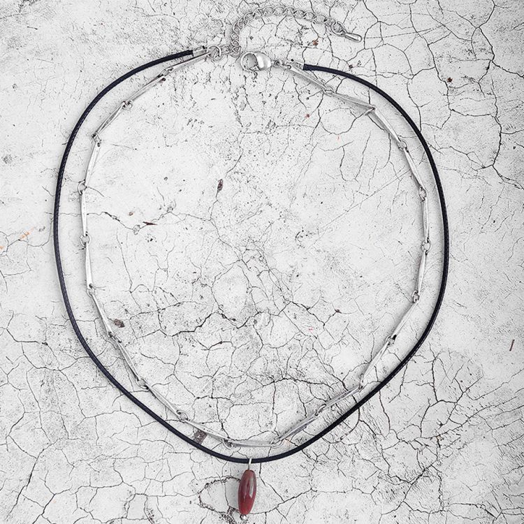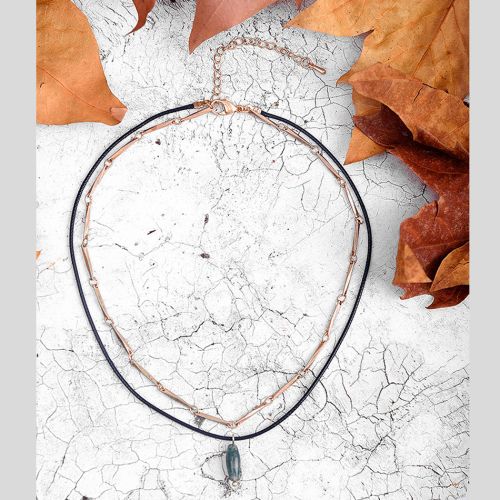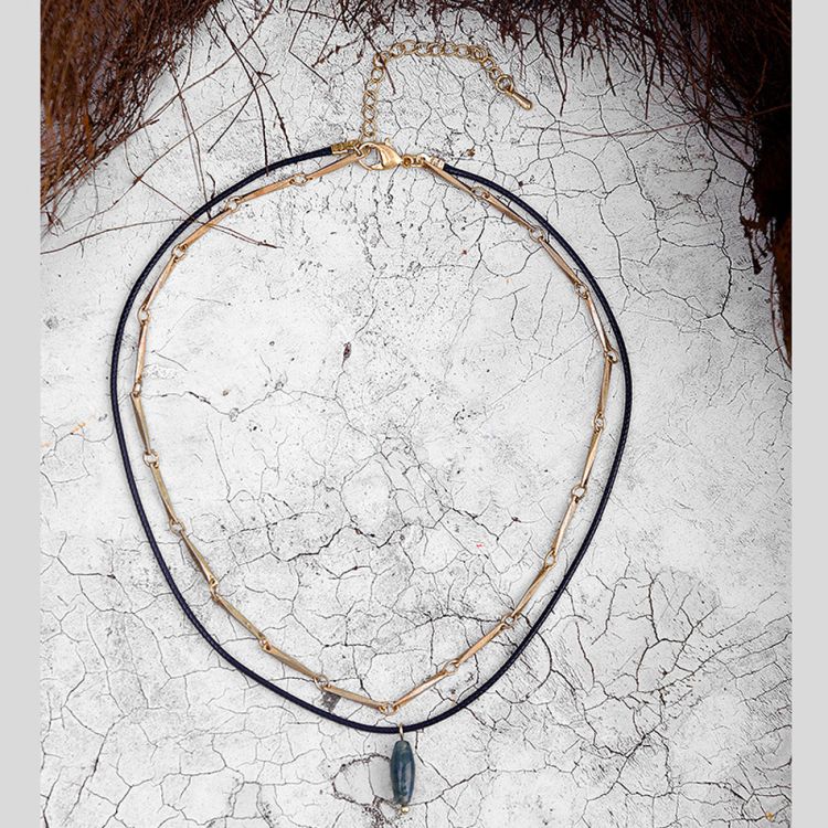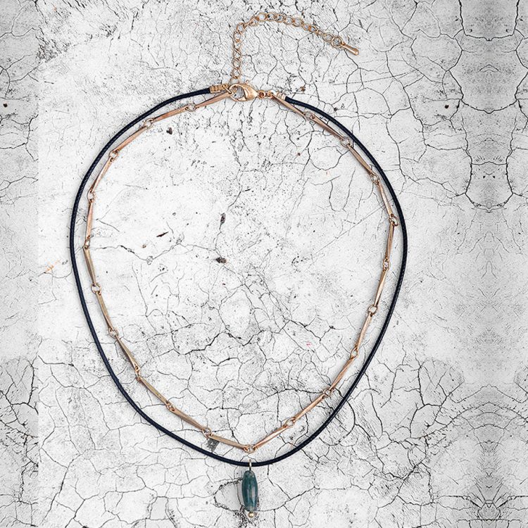 【HAFUMA Necklace】Blasting section of the fashion double-natural stone pendant retro lady collarbone necklace