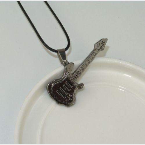Protect Name: Chic Fashion Men Jewelry Black Grey Rock Guitar Pendent Necklace Stainless Steel
