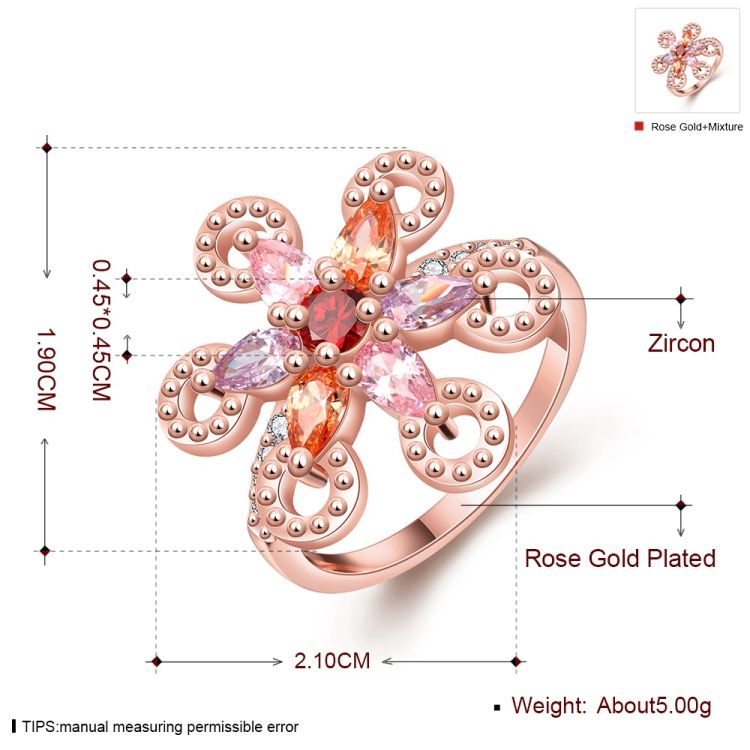 Item specifics:K gold zircon personality beautiful flower lady ring