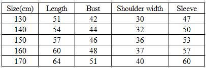 Size:130cm 140cm 150cm 160cm 170cm