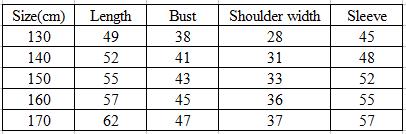 Size:130cm 140cm 150cm 160cm 170cm