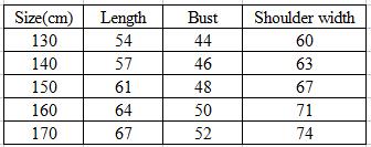 Sizes: 130cm 140cm 150cm 160cm 170cm