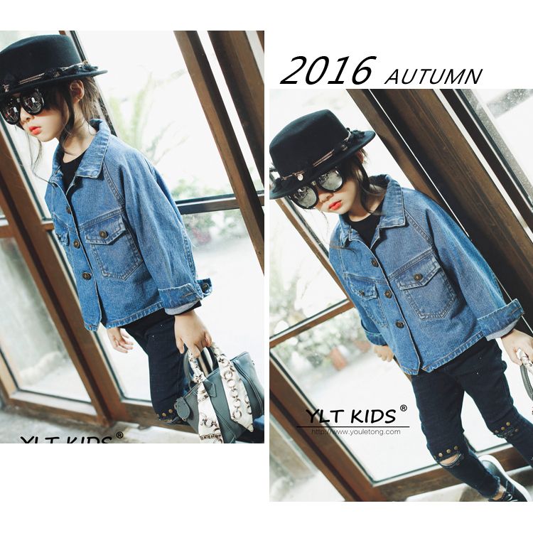 Product Name:Girls Kids Lapel Denim Jacket Slim Short cotton Coat Jeans