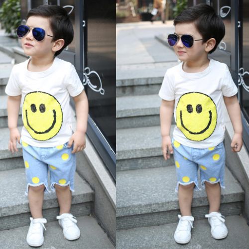 Product Name:2pcs Summer smile set Kids Clothing Sets Boys Children Outfits Suits for 80-110cm