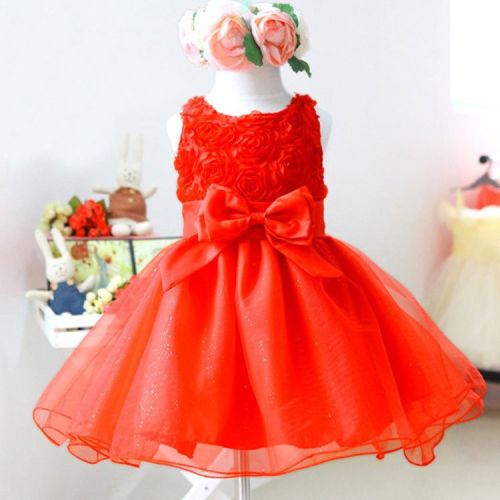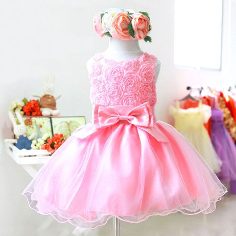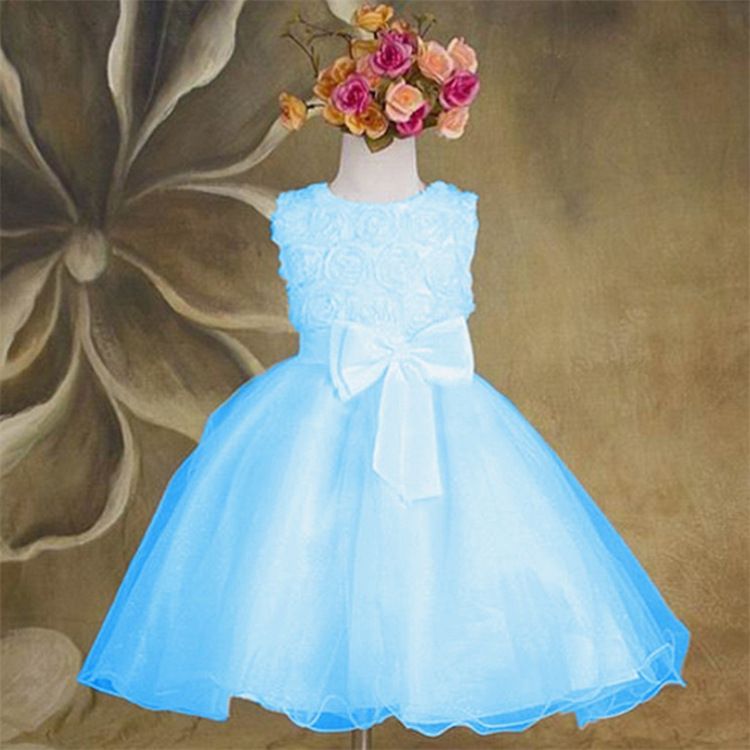 Protect Name: New Arrival Sweet Baby Toddler Girls Kids Children Princess Sleeveless Flowers Knots Wedding Party Dress Tutu Outfit#333