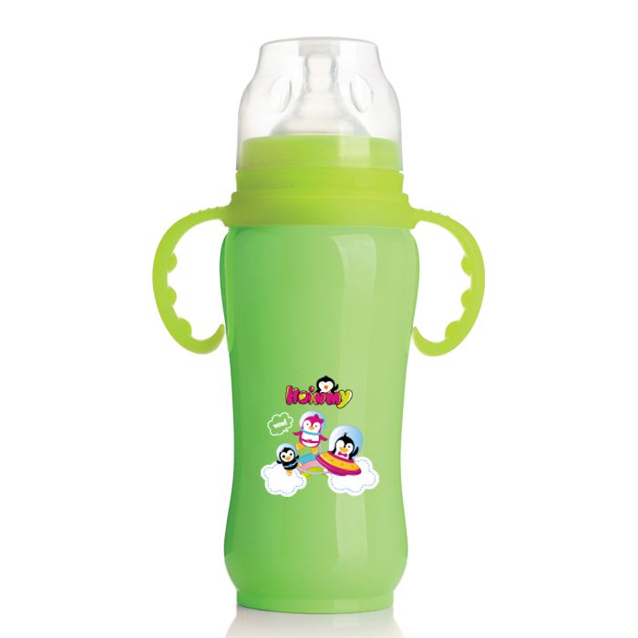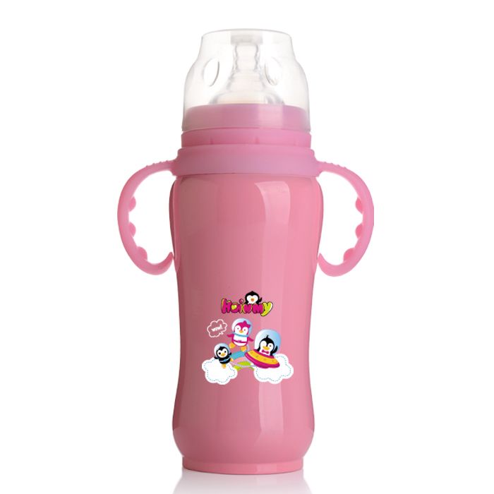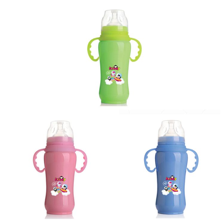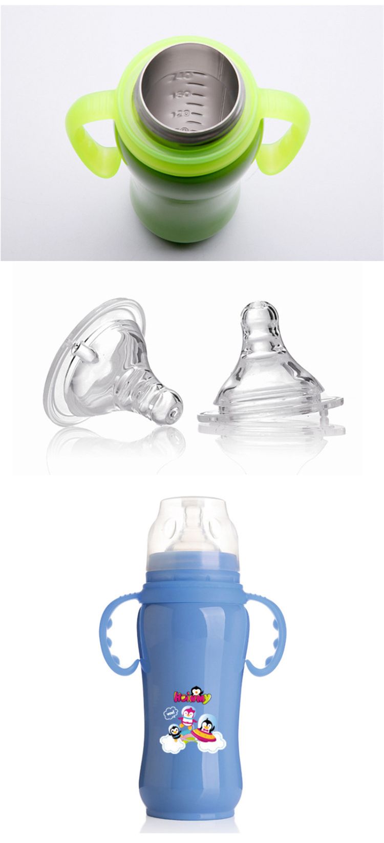Item specifics:Wide mouth gourd shaped stainless steel heat insulation milk bottle