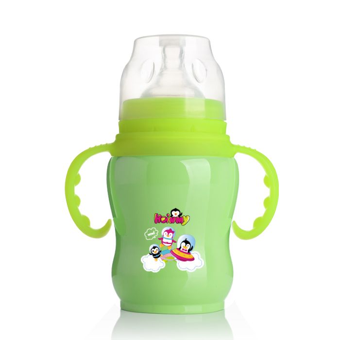 Item specifics:Wide mouth gourd shaped stainless steel heat insulation milk bottle