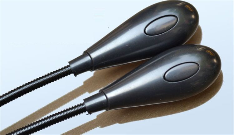 The product has two electric light holders and four LEDs. Switch on the rear of the product can control the two lights. Press once, one light will be on; twice, two light will be on, press another time again, two lights will be turned off.