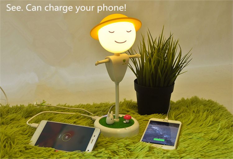 3. Phone charging. Scarecrow night light when the power is connected. It can also simultaneously provide two USB jack lets you charge other devices.
