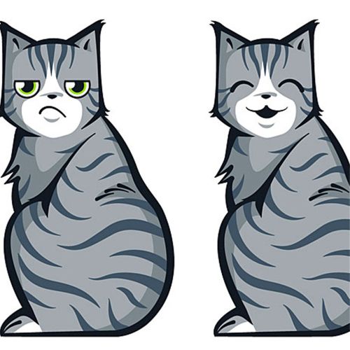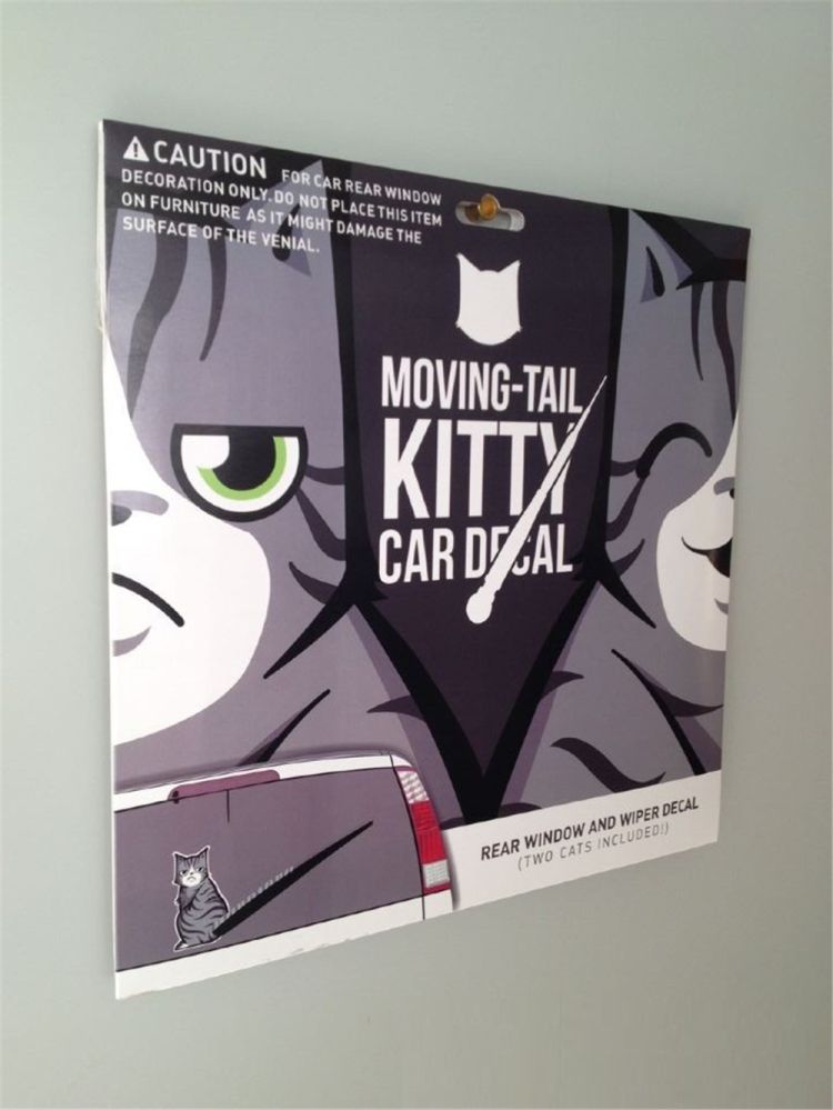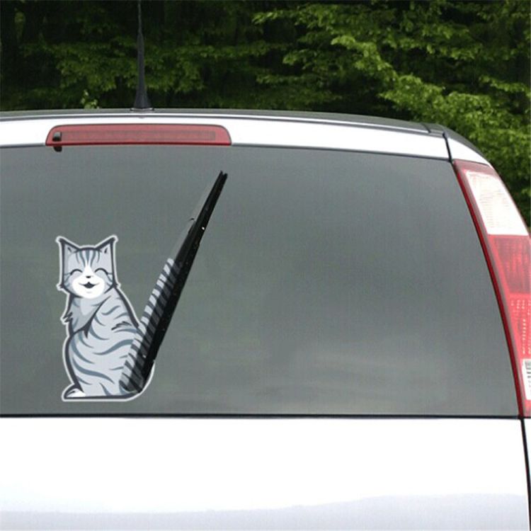 Two cats, one happy, another grumpy, very cute and lovely. When moving your window wiper, it seems that the tail of cat is moving.