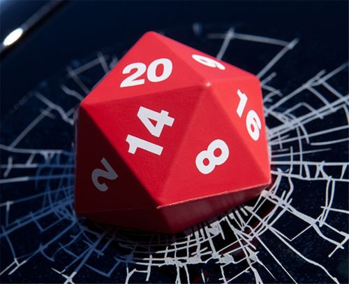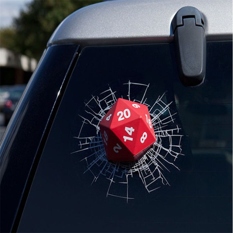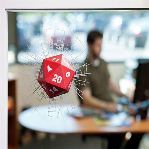 Vinyl decal looks like a mini 3D dice smashing your window.