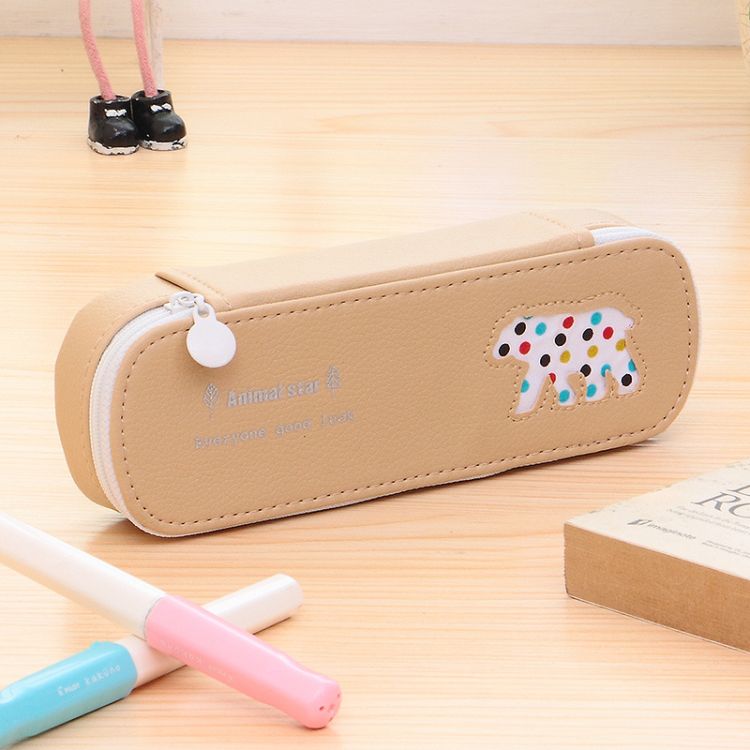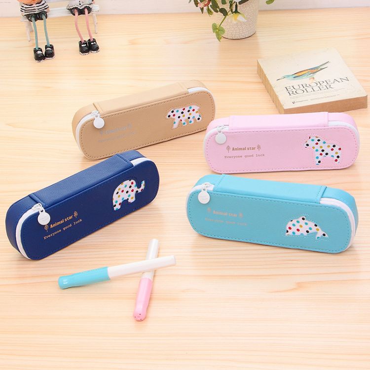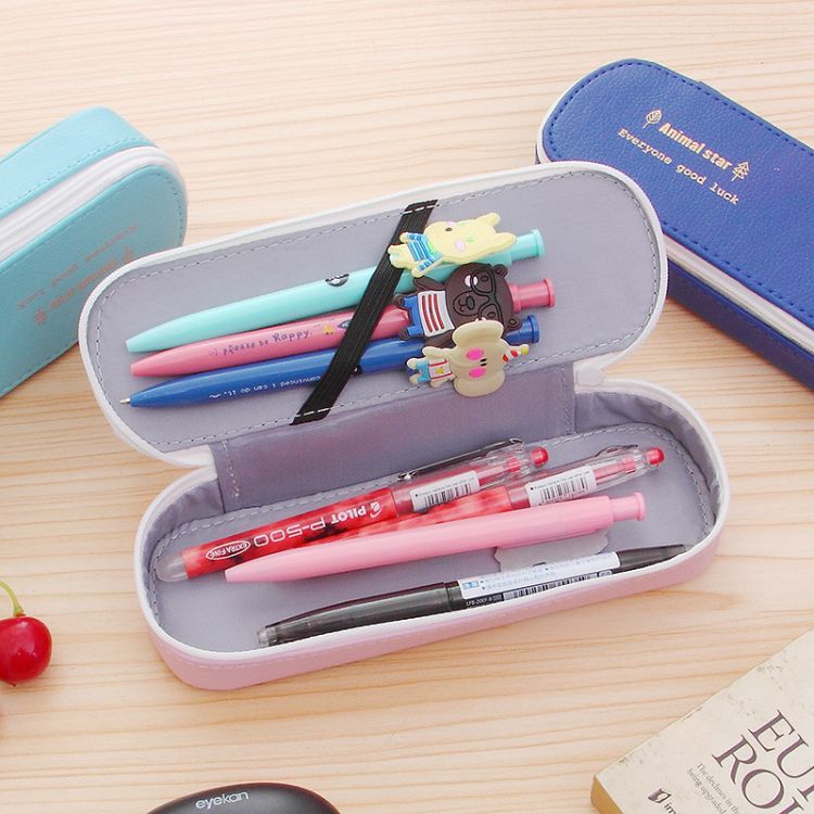 High quality cortex, the surface waterproof, fashion diversification, a greater advantage, large capacity can be installed within a lot of pen class, make-up items can also be decorated, double pull lock, use very smooth, high-quality polyester inside, Miscellaneous is not afraid of not fit.