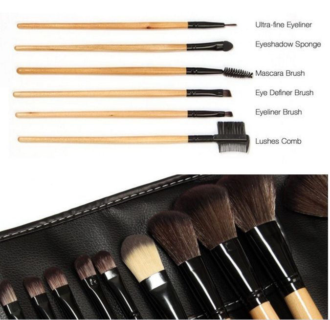 Material: Goat hair, Horse Hair, Synthetic Hair, Sponge, Aluminum, Wood, and PU leather makeup brush case