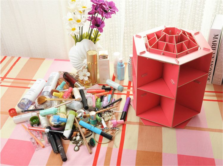 Big capacity. It has many grids, every grid can store many kinds of makeup. It can help you save space and say goodbye to mess.