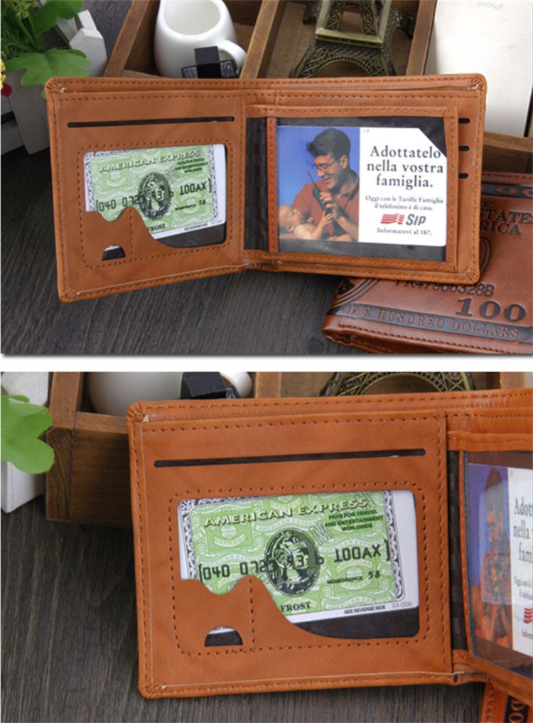 It' s inner structure is one zipper pocket, two photo slots, four card slots, two money pockets. You can put money, photos and card in it.
