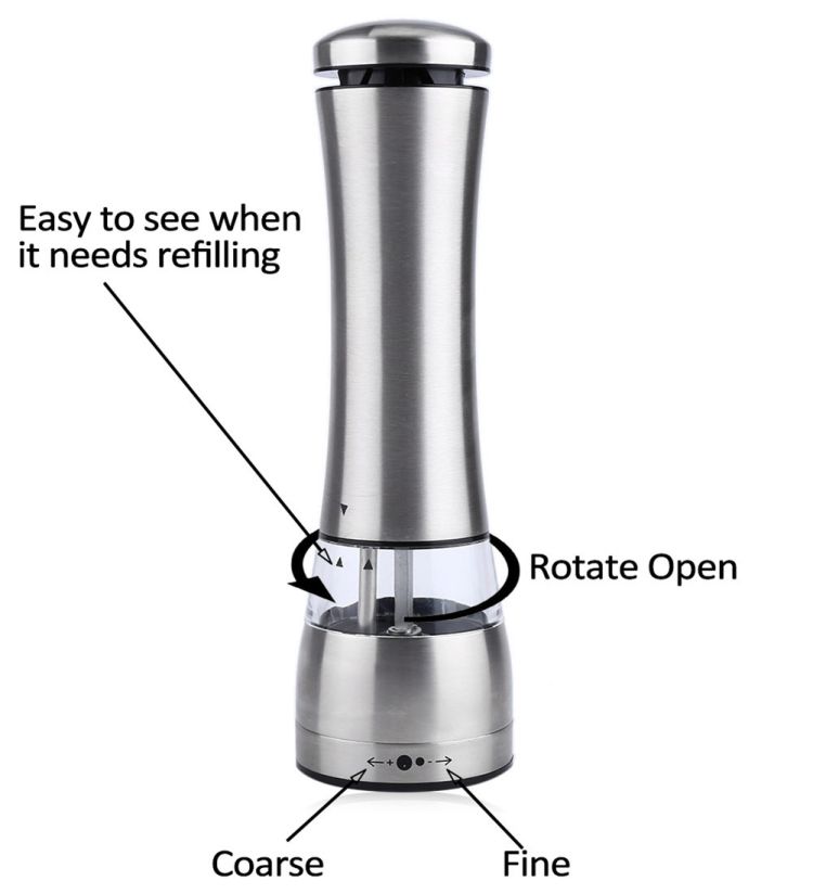Package Contents: 1 x Electric Stainless Steel Pepper Salt Mill