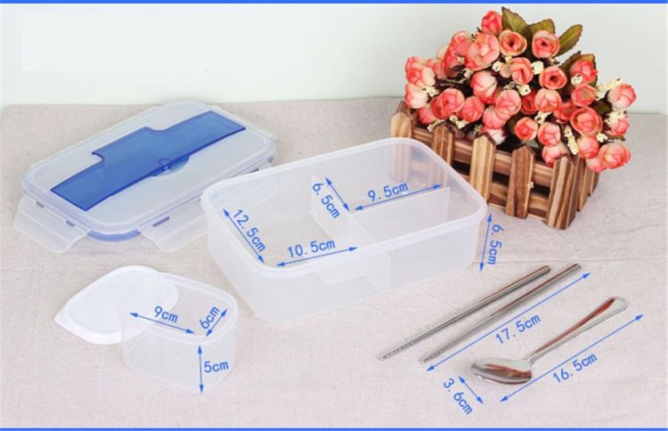 The lunch box has three grids so you can put food in different grid.