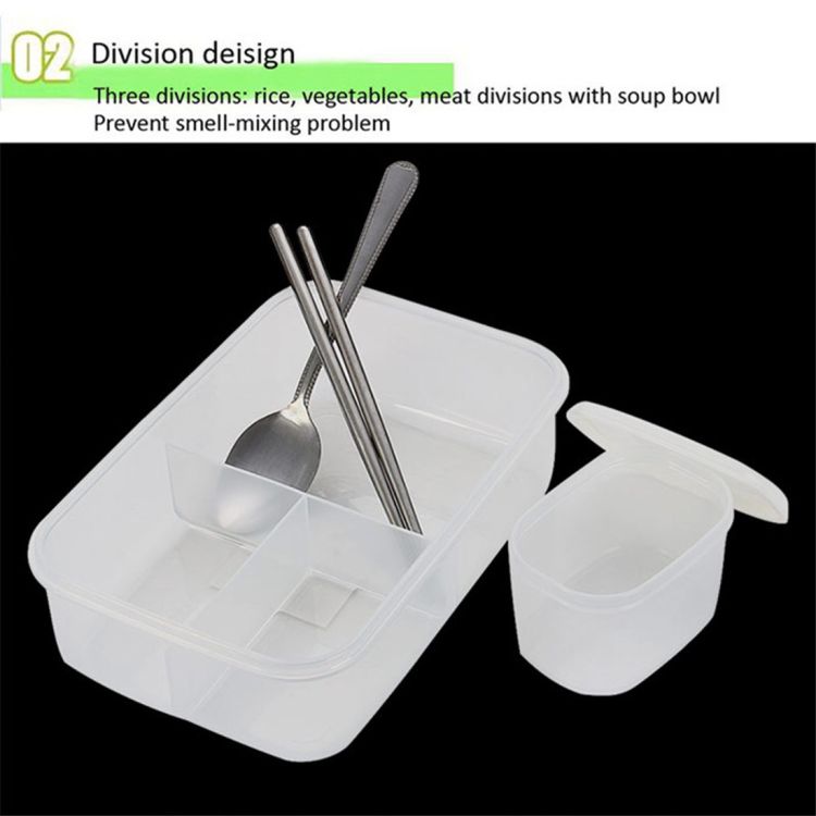 There is a soup bowl in the lunch box, so you can also bring soup. There are also chopsticks and spoon with it, very convenient.