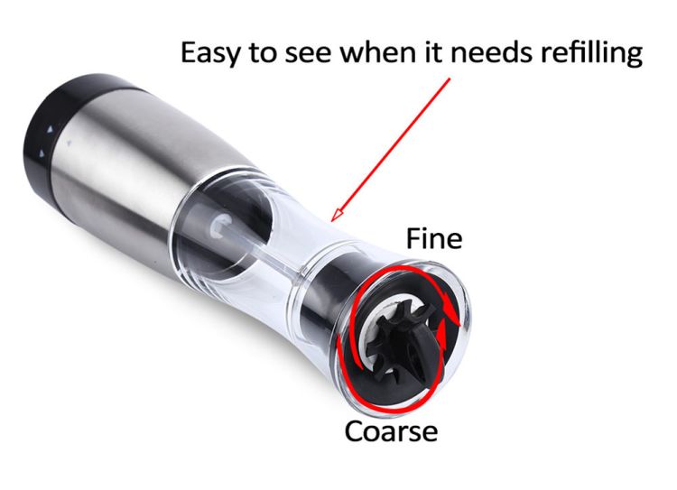 ● Suitable for milling all dry based spices: Salt, pepper, peppercorns, sesame, etc.