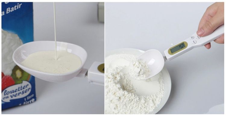 Tare function: Put the container of items in the spoon and press the ON / OFF / TARE button, then put the items in the container and the LCD will shows the net weight