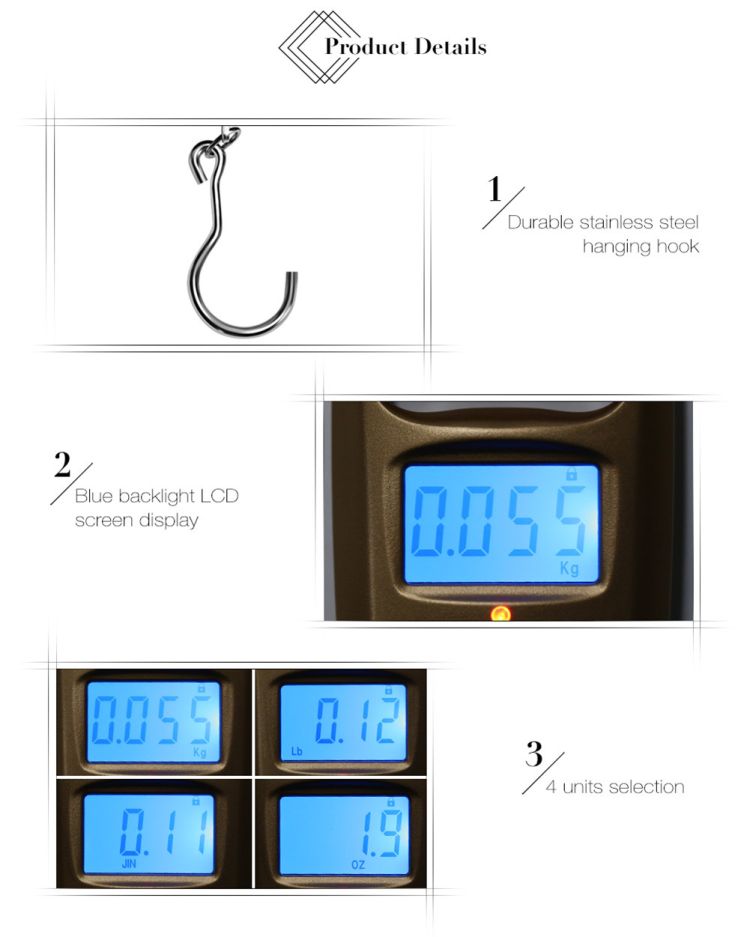 Item Tittle-- 50kg Portable LCD Electronic Hanging Fish Digital Balance Weight Scale Package Measurement with Hook