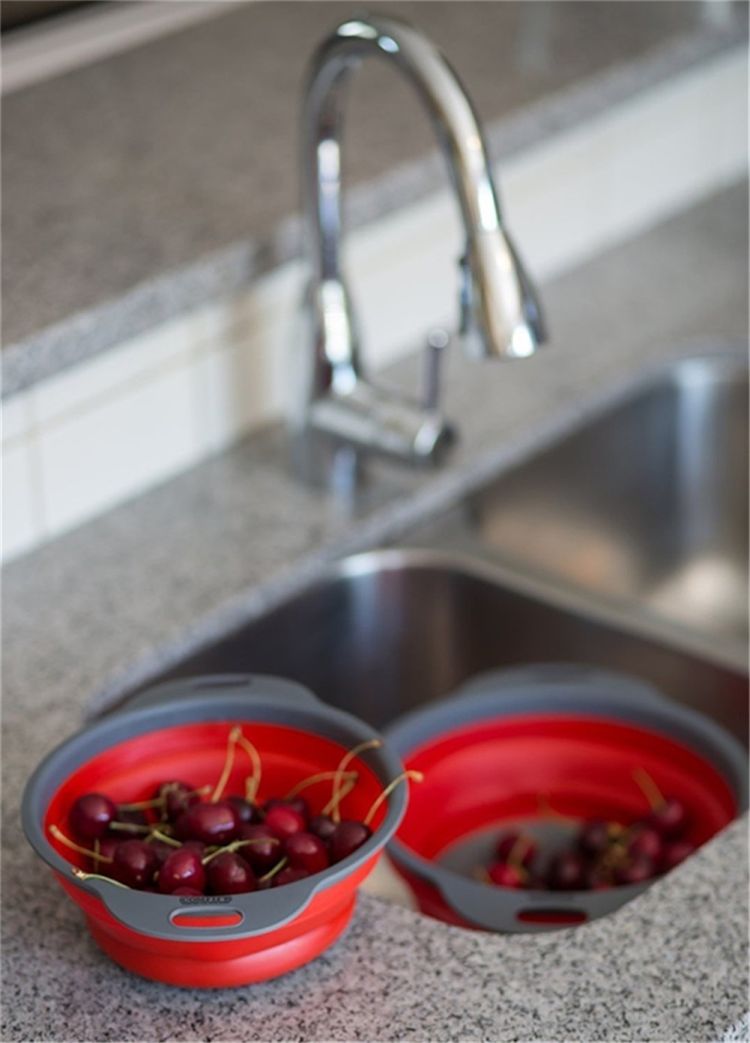 3. space-saving design. Strainers are foldable, so they do not take up much needed room in your kitchen cupboards. Collapsed strainers is less than 2 inches high