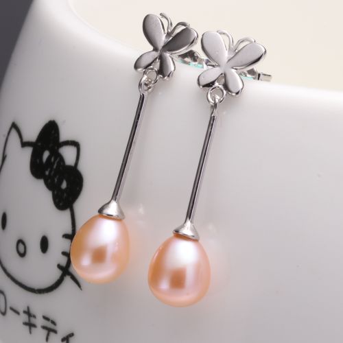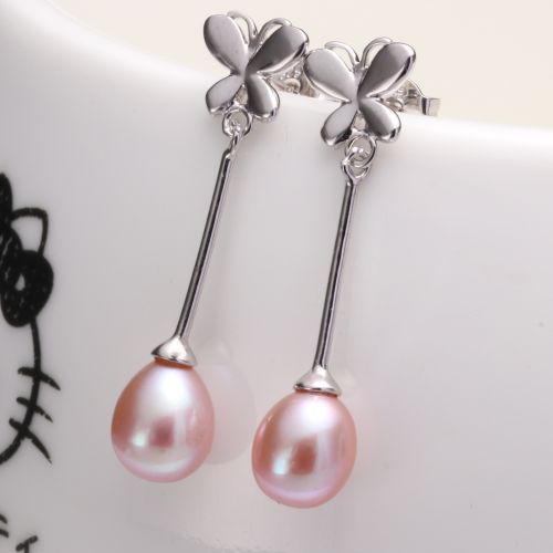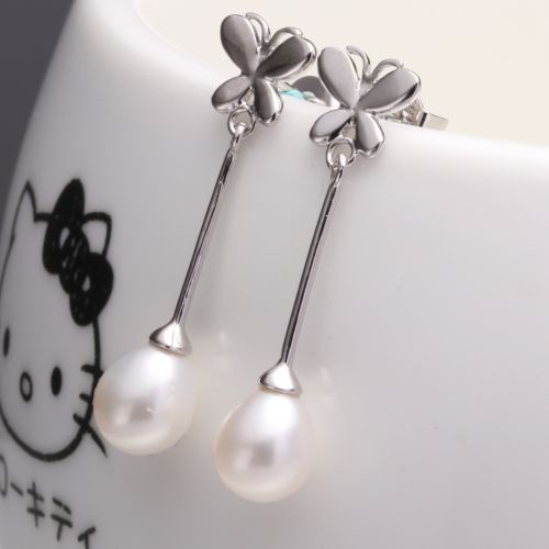 long butterfly dangle pearl earrings