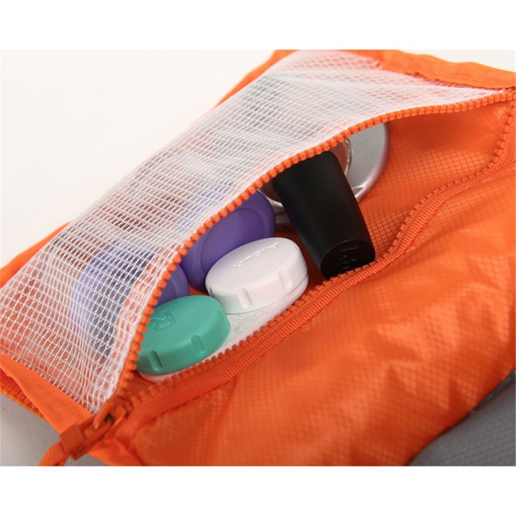 2. A layer of waterproof PVC in the bag of two sides, used to receive the washing and toiletries.