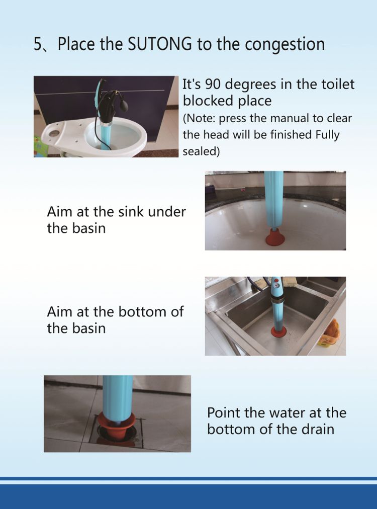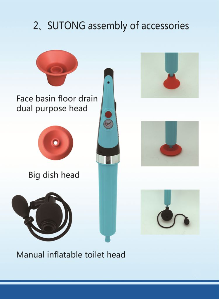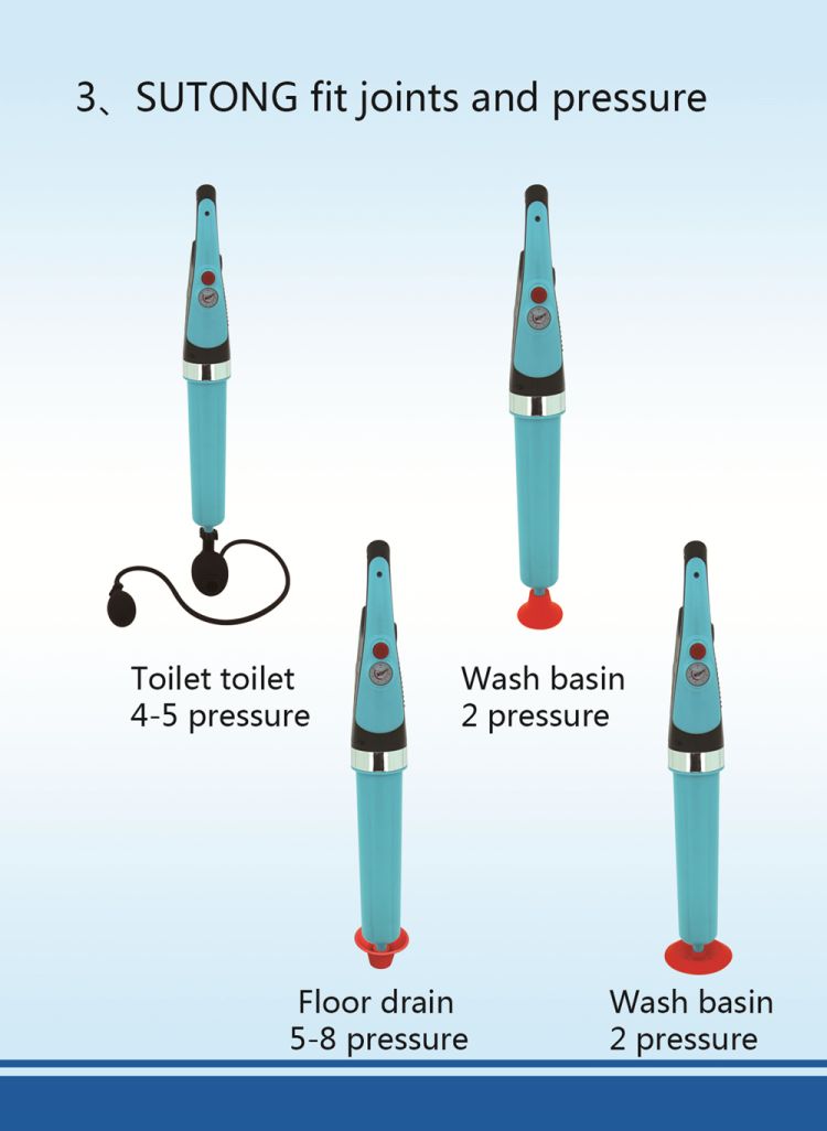Working Principle: high air pressure blast clears obstructions in pipe, shower and toilet drains, ergonomic pistol grip. pressure release safety valve.