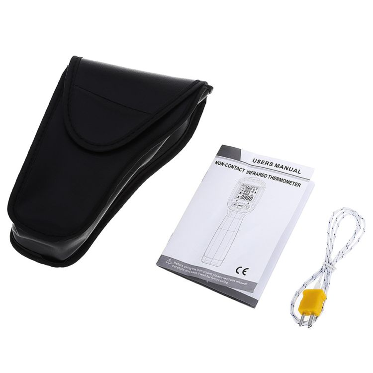 Package Contents: 1 x Infrared Thermometer, 1 x English User Manual, 1 x Bag, 1 x Wire