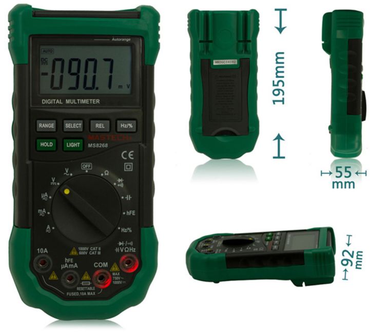 ● Multi-functional: Including measurements of AC / DC voltage and current, resistance, capacitance, frequency, duty cycle, transistor, diode and continuity test.