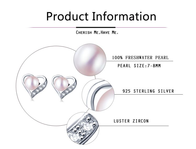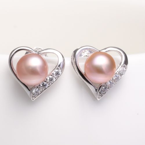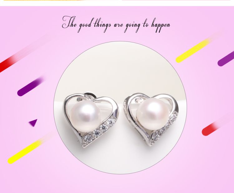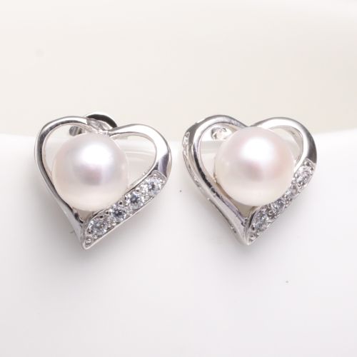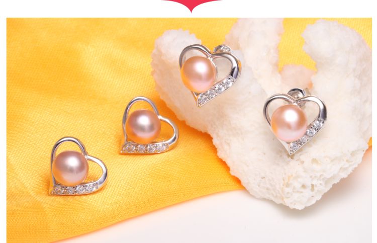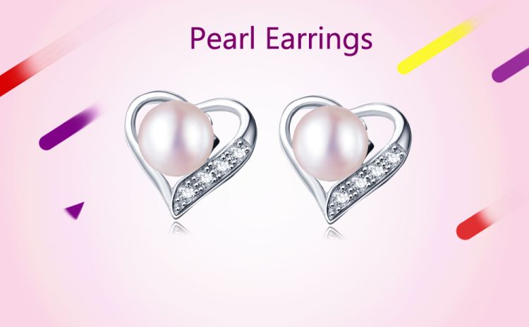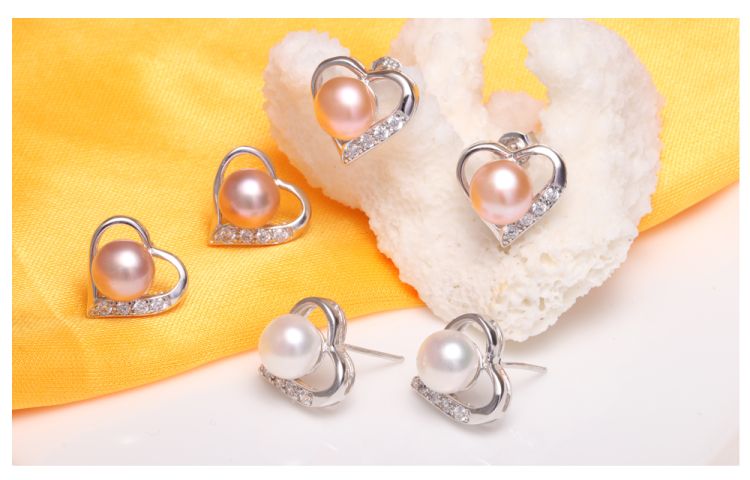 heart design pearl stud earrings