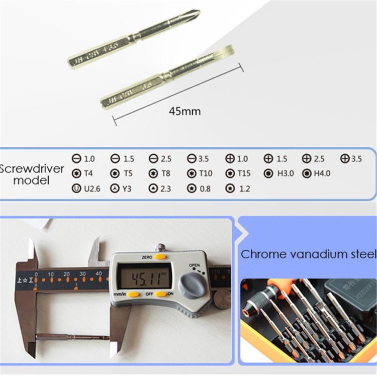 ● It includes 20 screw head types: Slotted (1.0mm / 1.5mm / 2.5mm / 3.5mm); Cross (1.0mm / 1.5mm / 2.5mm / 3.5mm); Torx (T4 / T5 / T8 / T10 / T15 / 0.8mm / 1.2mm); Hex (H3.0 / H4.0); U2.6; Y3.0; Triangle:2.3