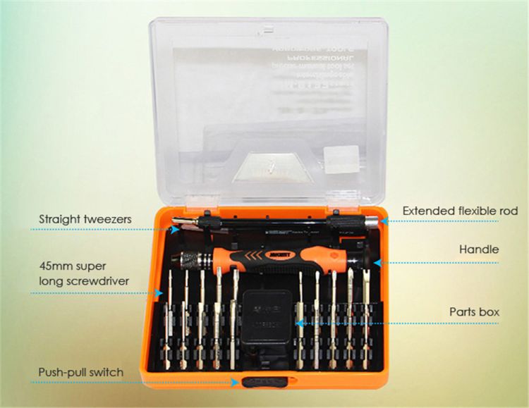 Package Contents: 20 x Screwdriver Bit, 1 x Non-slip Handle, 1 x Multifunction Extension Bar, 1 x Accessory