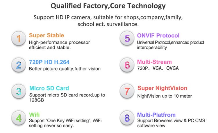 Support P2P (point to point) technology, the IP Camera can be linked through the internet without any complicated port mapping.